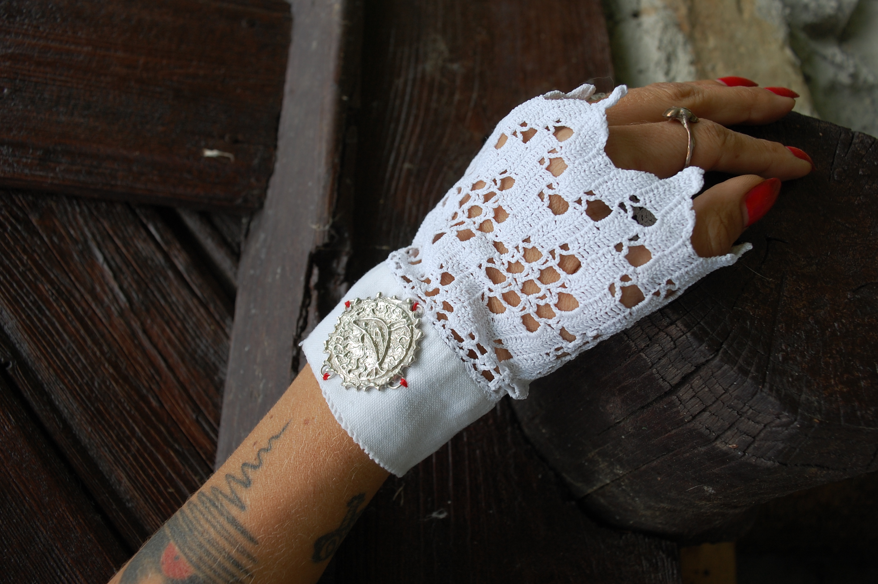 Among the works, there was one object that was never meant to be sold. It was too personal, too charged with memory. It included a fragment of bed embroidery made by my great-grandmother — a small piece of textile history, of lineage, of inherited gesture. I wore that piece around my neck during the exhibition. You can see it in the photos. It was my quiet anchor, my bridge between generations.