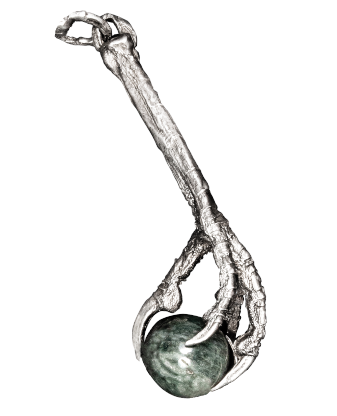 Silver claws of birds, symbols of freedom and transformation, hold the power of the skies. Bones, relics of the earth, tell stories of wisdom and strength passed through time. Crystals, charged with energy and healing, pulse with the power of the cosmos.