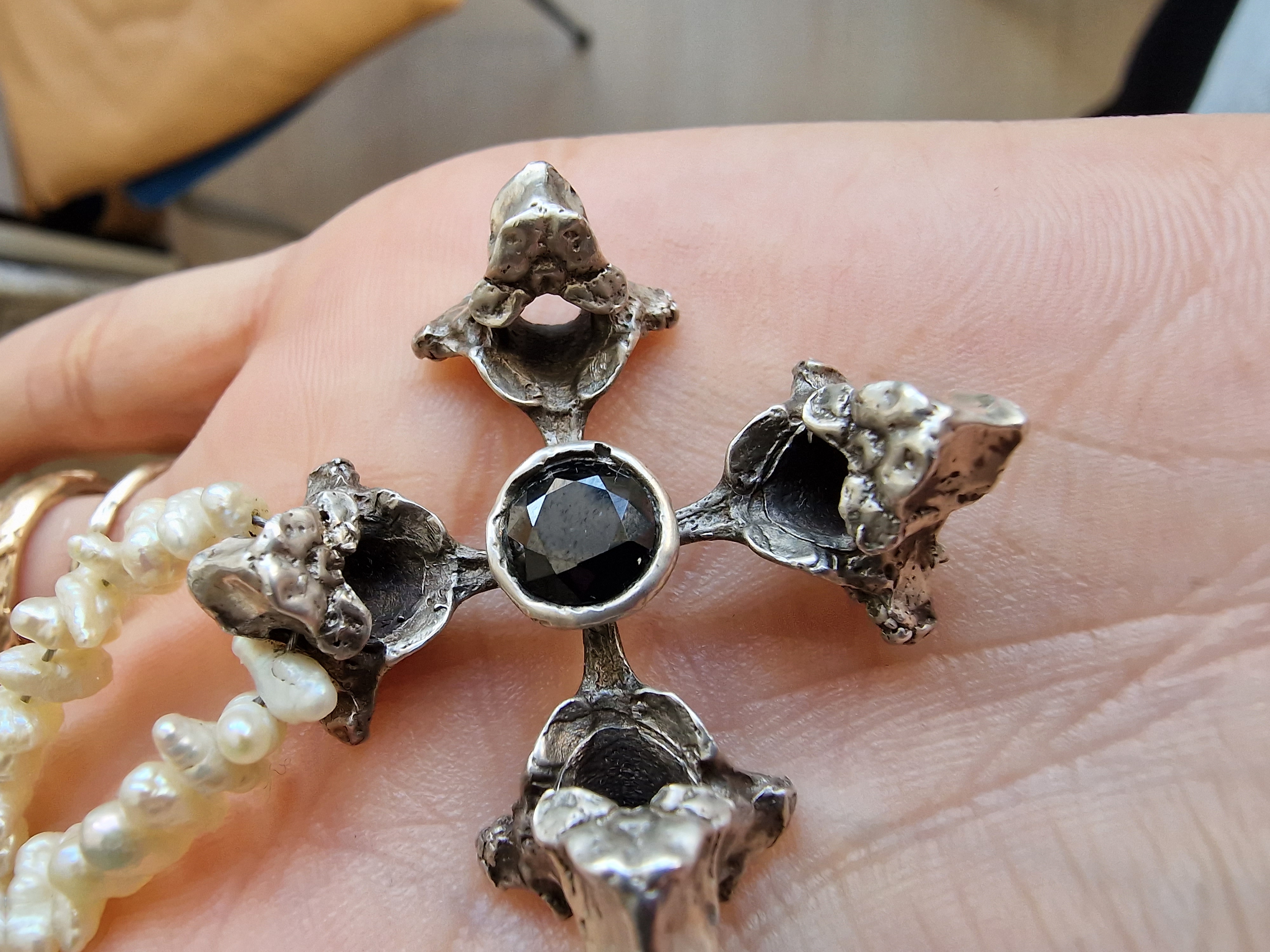 A cross of bone, reborn in silver.