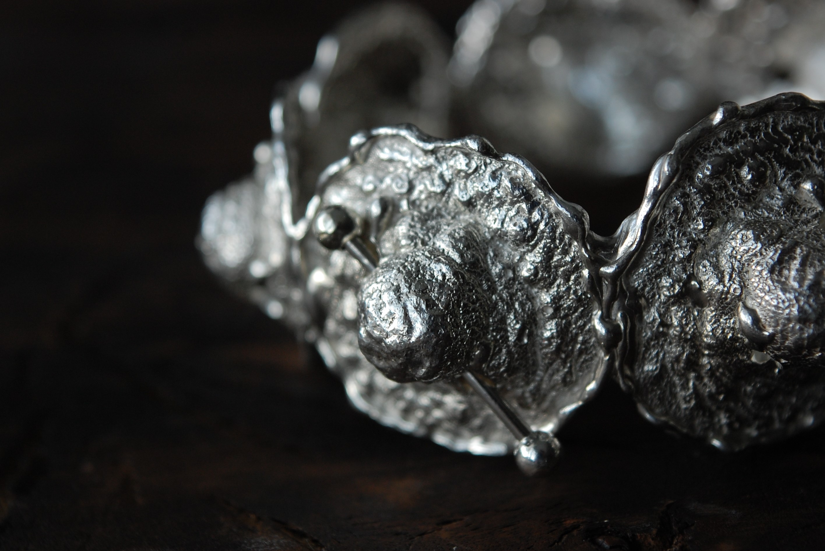 Custom orderThis bracelet is a unique sculptural object, cast directly from the body and transformed into wearable silver.