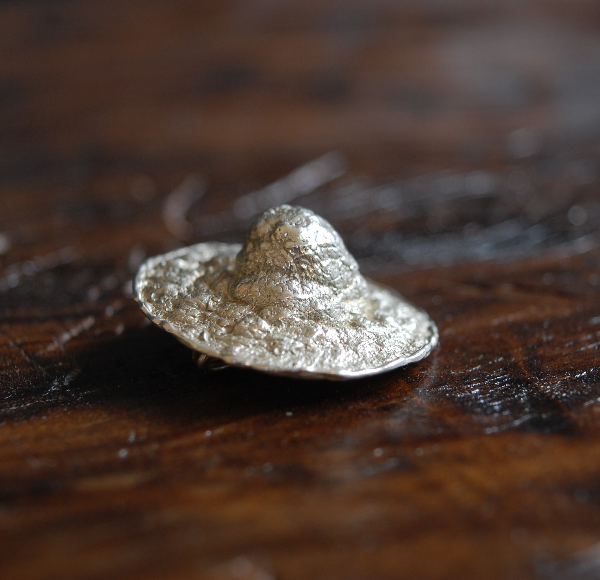 Its raw surface and organic irregularities preserve the authenticity of the original cast, allowing the piece to function not only as adornment, but as a small wearable statement.