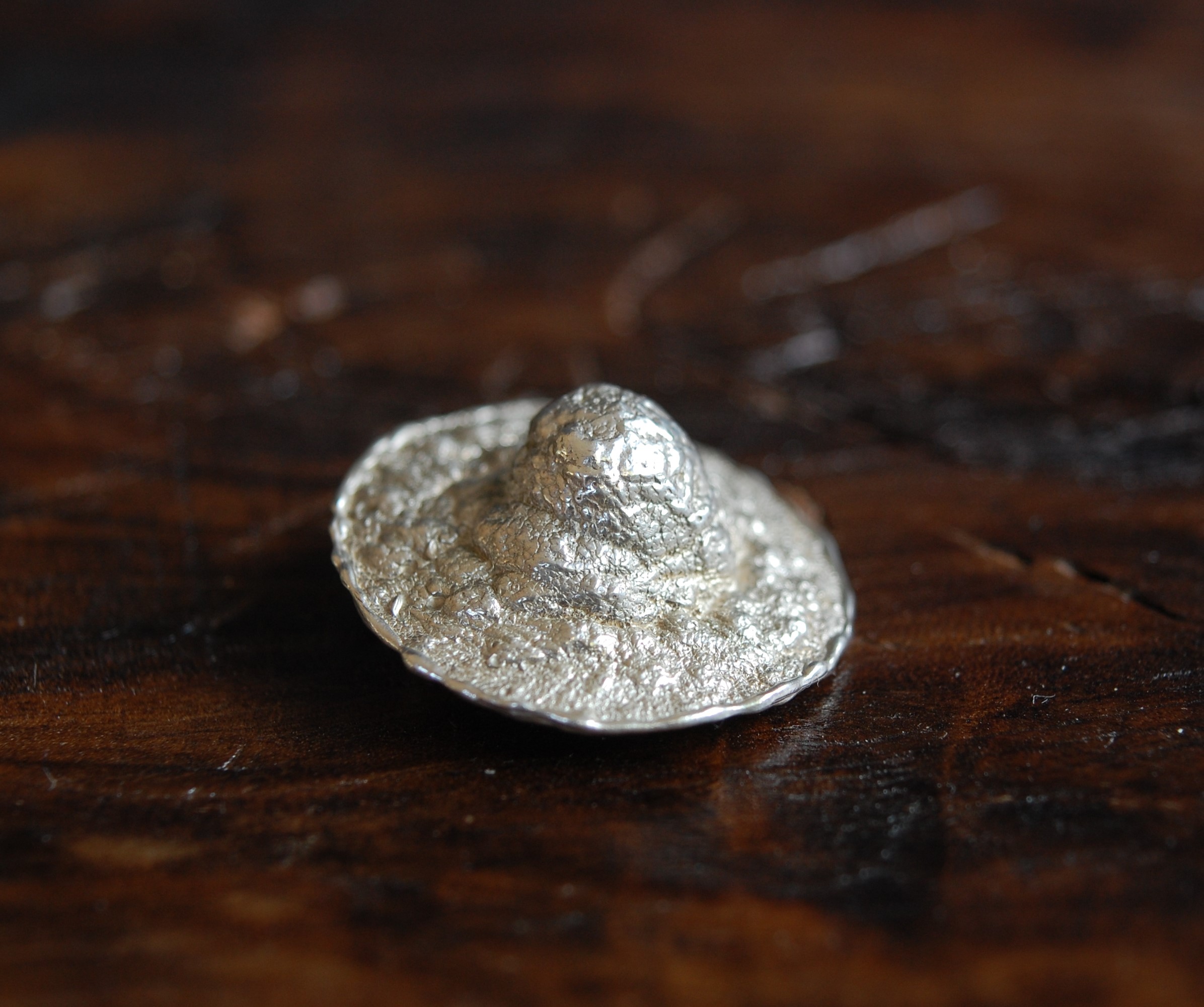 This brooch is cast directly from a real human body — a faithful imprint of a woman’s nipple, preserving every subtle texture of skin transformed into sterling silver.